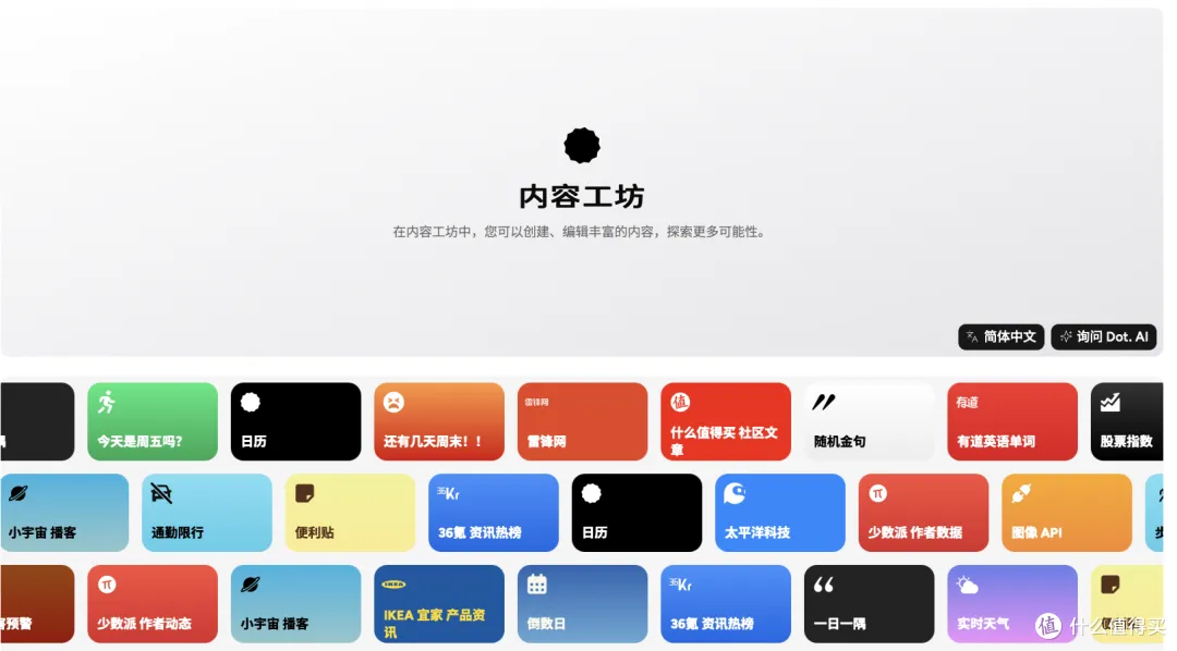 App 里的“内容工坊”有五十多种内容,其中竟然还有值得买的内容。你可以像创建歌单一样,给自己搭了个信息列表:日历、今日天气、通勤时间、还有我盯了很久的几只股票。可以设置成隔几分钟轮播一次,像个安静的管家,不多说一句话,但总能在我需要的时候,提供我想要的信息。