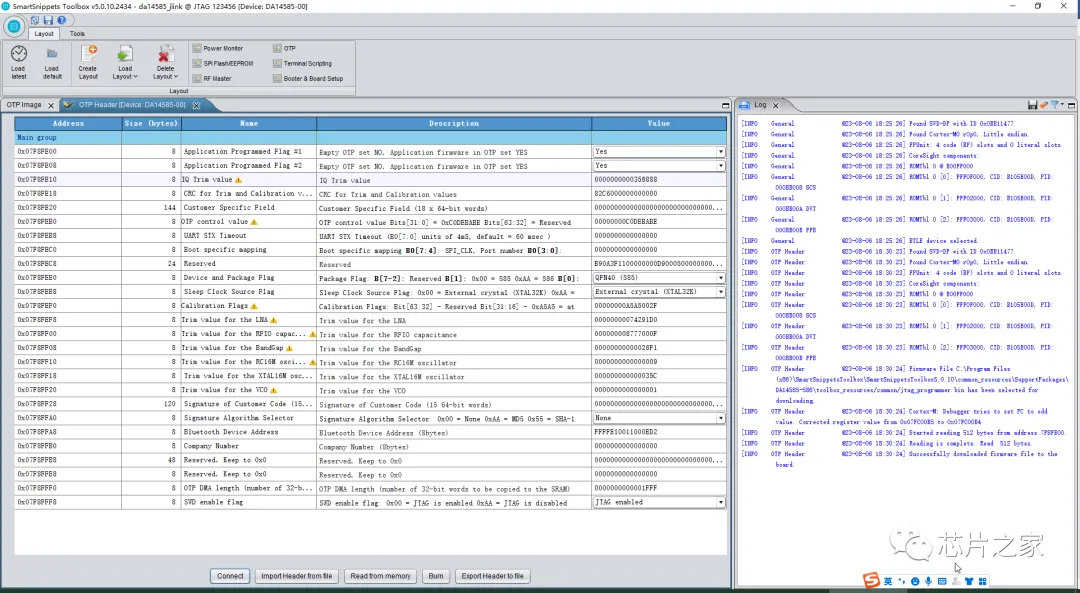 TTL后面用的少,因为JLINK-OB可以承接所有工作,所以TTL只是用来看调试信息输出日志。我们先打开DA的 SmartSnippets Toolbox v5.0.10 工具,然后接上JLINK-OB+上面的黑色价签板子,需要焊接好线。