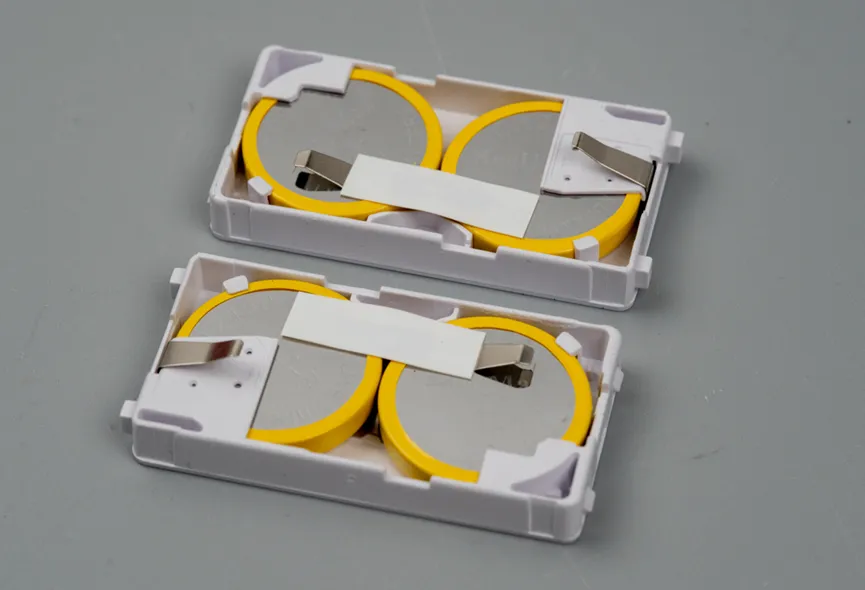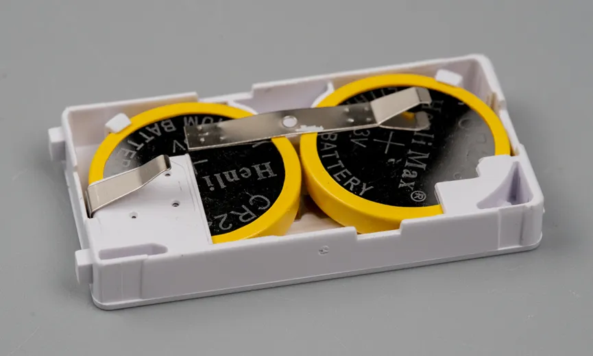 每个电池仓里两个R2450纽扣电池。