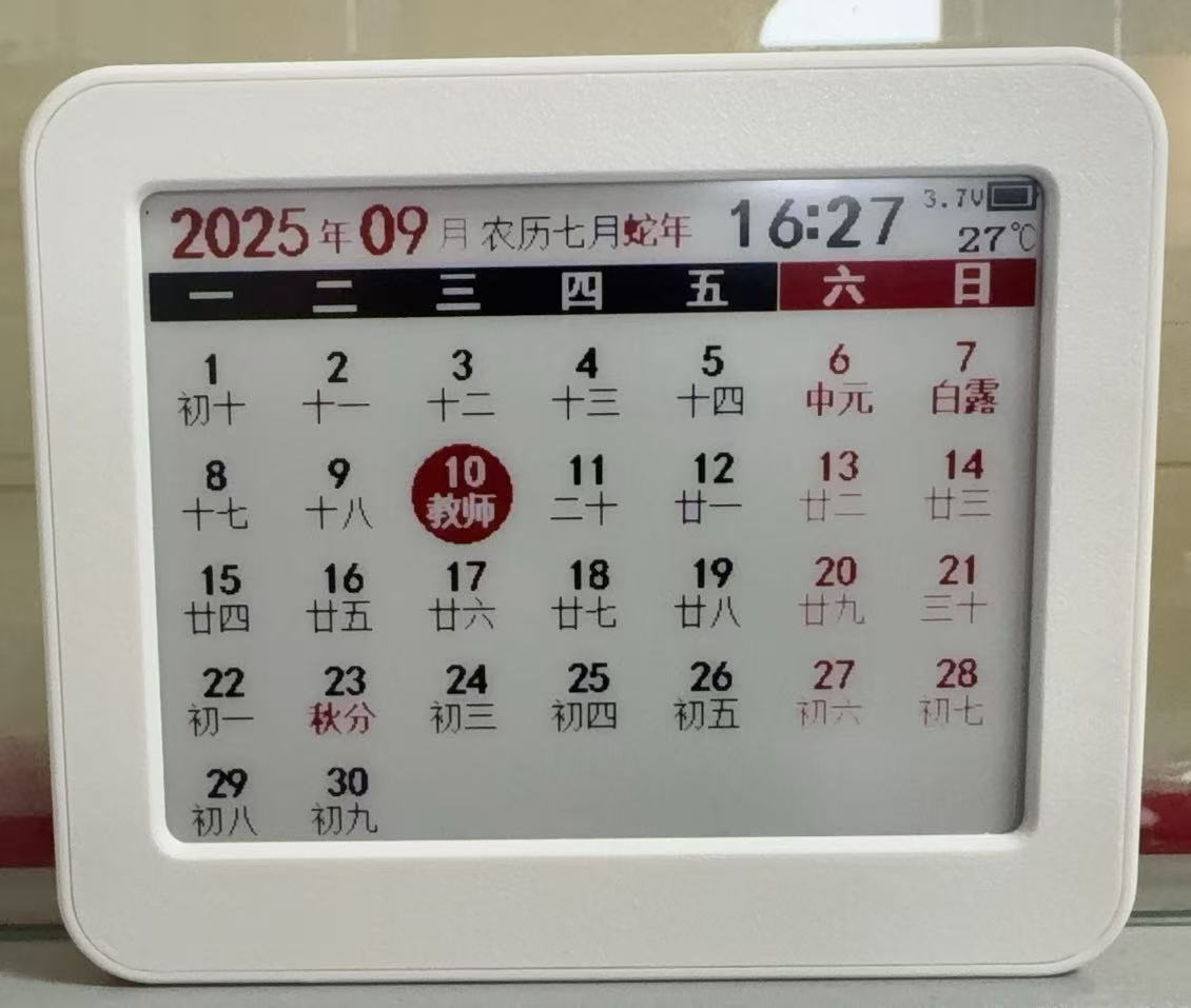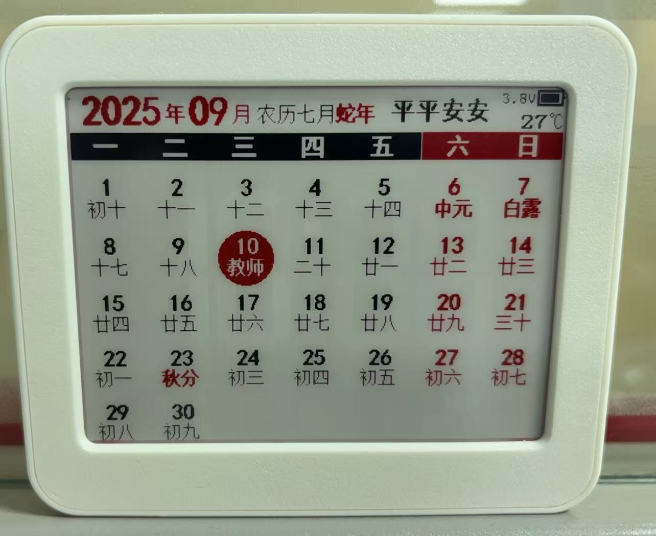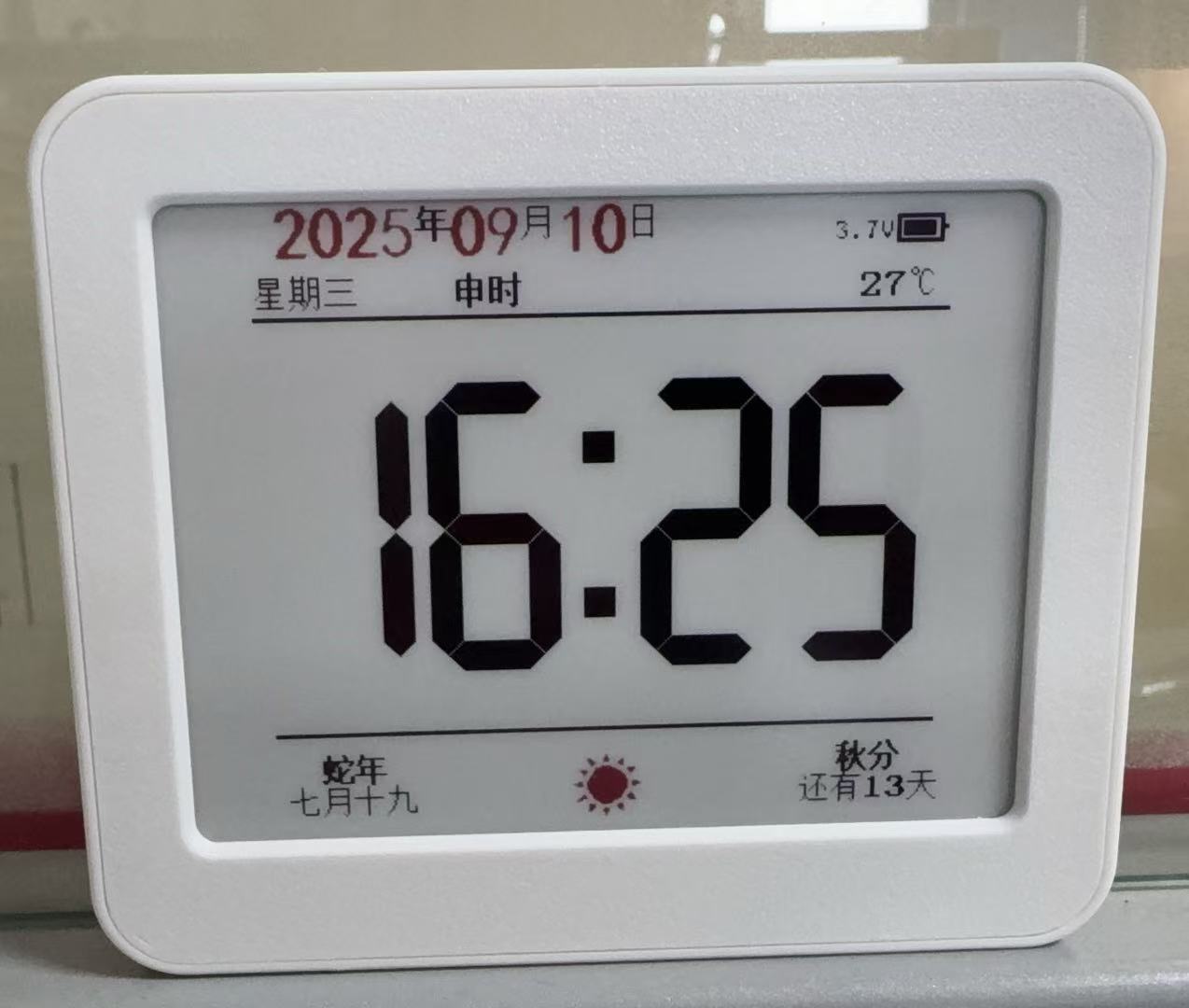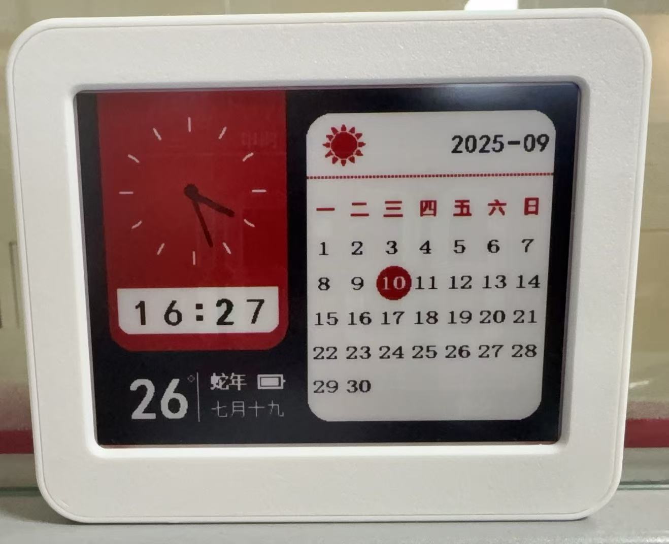 目前市场上的墨水屏日历层出不穷,显示界面也是百花齐放,但是下面这种界面三色墨水屏界面让人耳目一新。