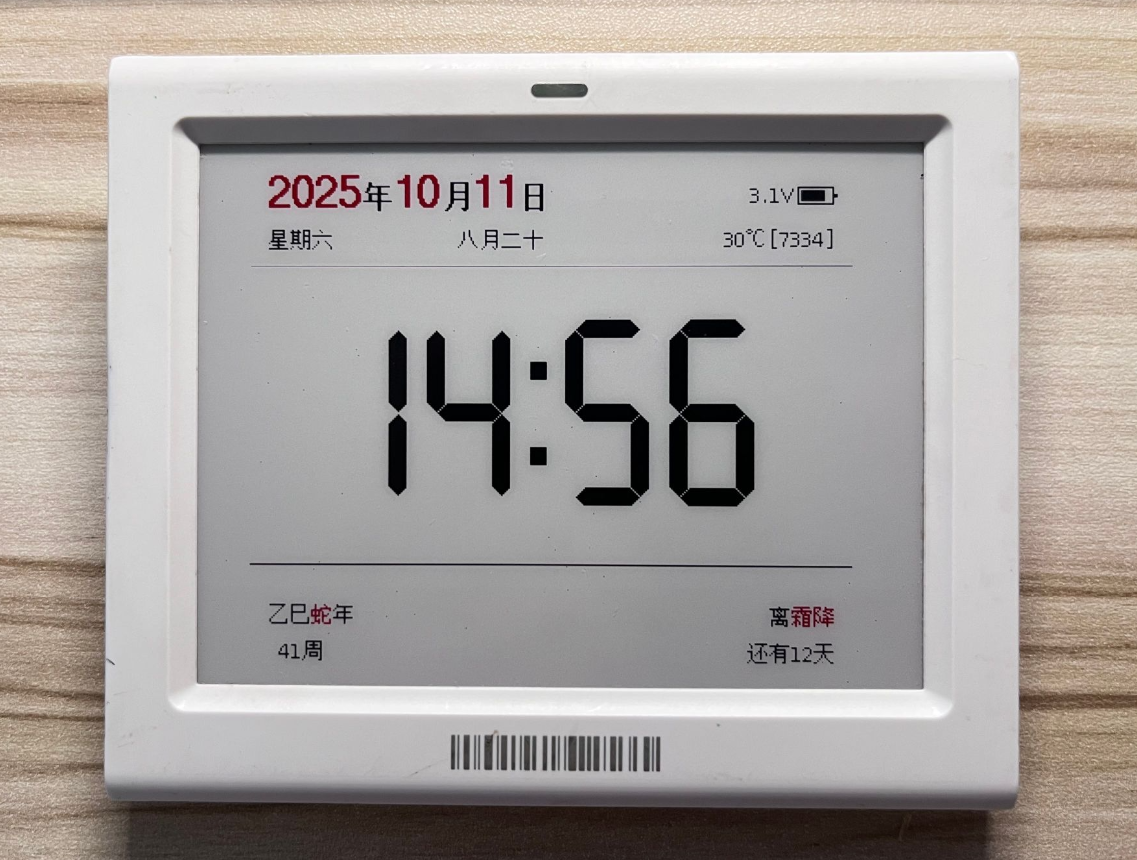 需要注意的是:时钟模式目前使用全刷实现,不建议长期开启。本日历固件支持蓝牙 OTA 更新,后续可能会通过更新给时钟添加局刷功能,敬请期待。